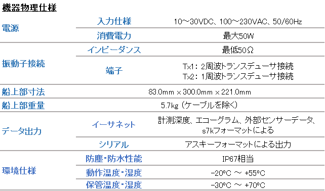 単一周波数のみ使用可能な1周波モデル、2周波同時オペレーションが可能な2周波モデル、FM波の発振により大深度測深にも対応可能な2周波ER(Extended Range)モデルをラインナップしており、接続する振動子に応じてフレキシブルにシステムを組むことが可能です。