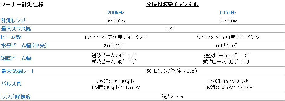 SeaBat F30は市場で最もユニークなソナーシステムです。システムは超高解像度な前方監視イメージを出力する635kHzチャンネルと、インターフェロメトリを応用したRESON社独自のバーニア処理によってソナー前方の海底を広範囲に計測する200kHzの前方海底地形測深チャンネルをそれぞれ使用することができます。