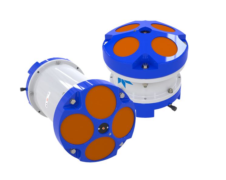 Teledyne RESON社のマルチビームソナー「SeaBat Tシリーズ」は、長年の技術革新によって圧倒的な測深性能を実現したフラッグシップモデルです。最大1024本の音波を発信し、海底を広範囲かつ高精度に測深が可能です。